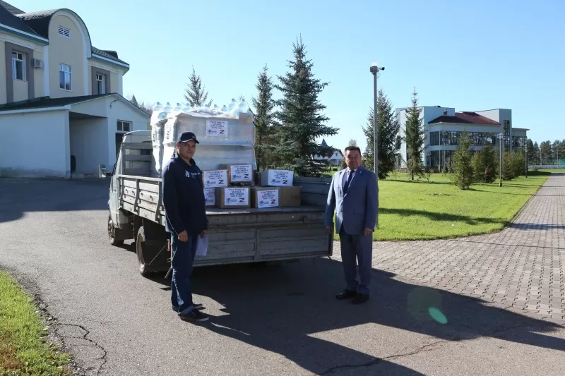 Сегодня санаторий «Красноусольск» передал администрации муниципального района Гафурийский район 10 тонн воды и продукты питания для отправки в зону специальной военной операции
