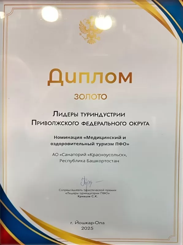 Победа в номинации «Медицинский и оздоровительный туризм ПФО» как «Лидер туриндустрии Приволжского федерального округа»!