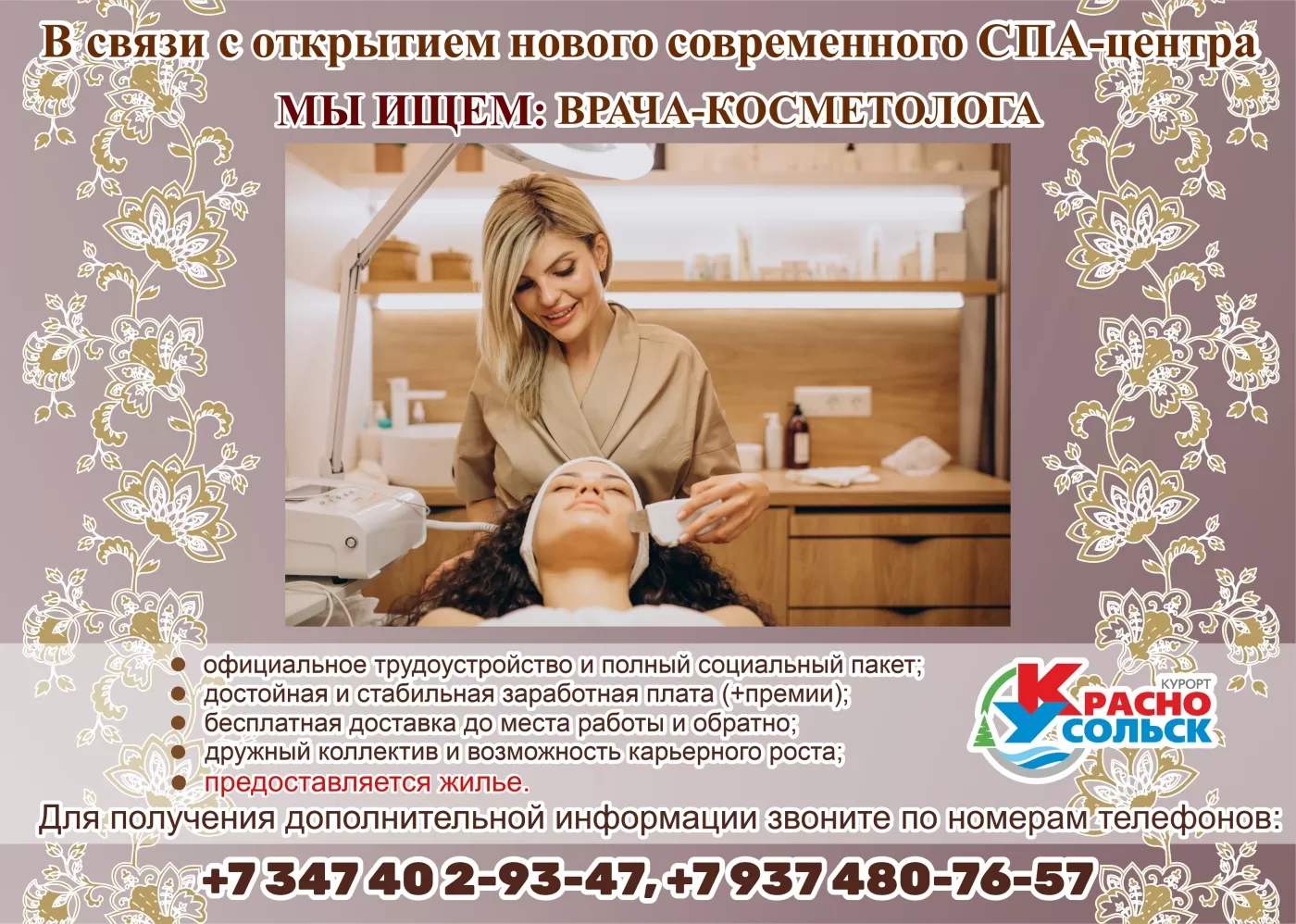 Мы рады сообщить о начале набора специалистов на должность врача-косметолога в наш новый современный СПА-центр!