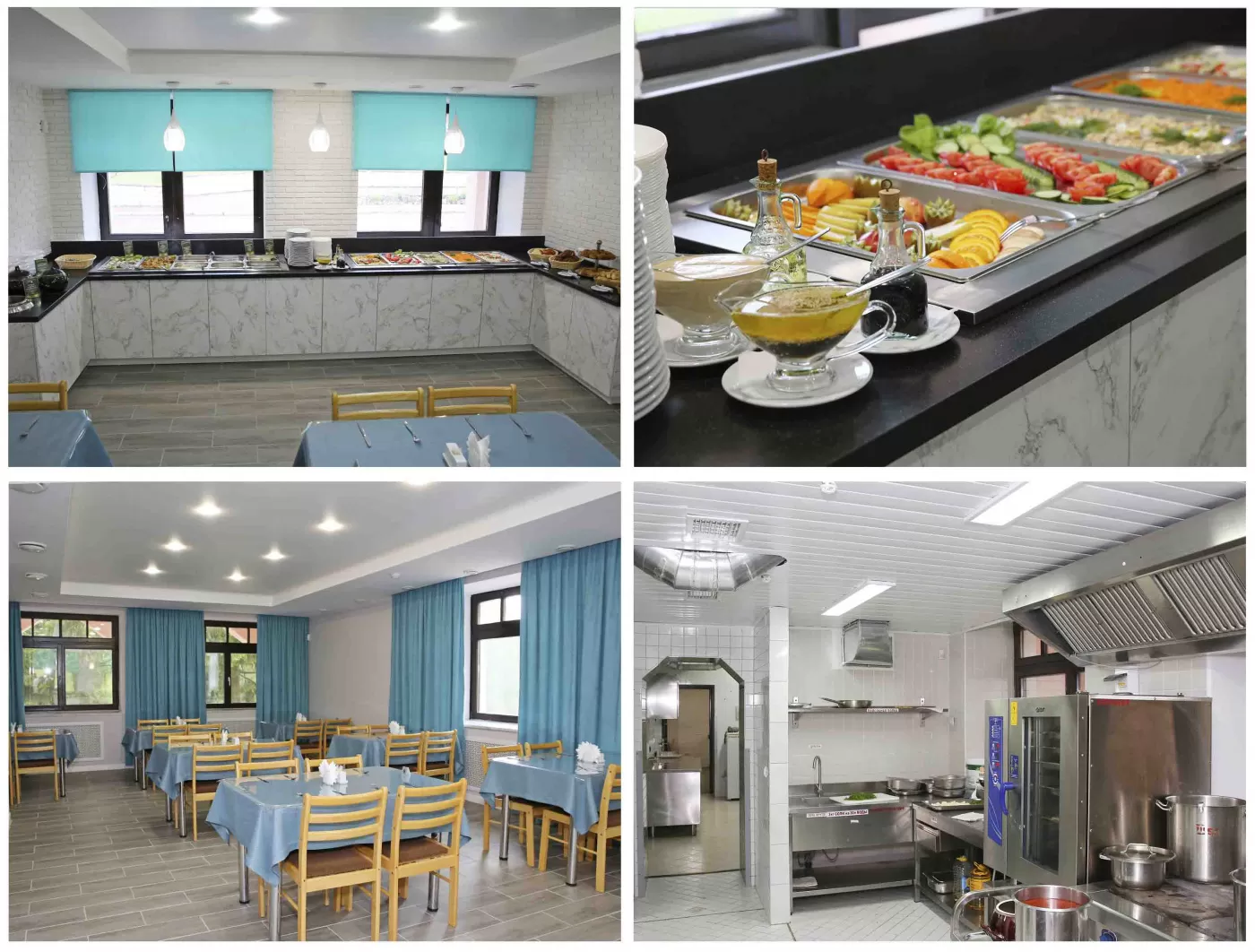Питание организовано по системе «Шведского стола». В планах - введение заказного меню. Для правильного, сбалансированного питания разработаны 14-дневное меню, лечебные диеты, обновлена картотека и расширен ассортимент блюд.