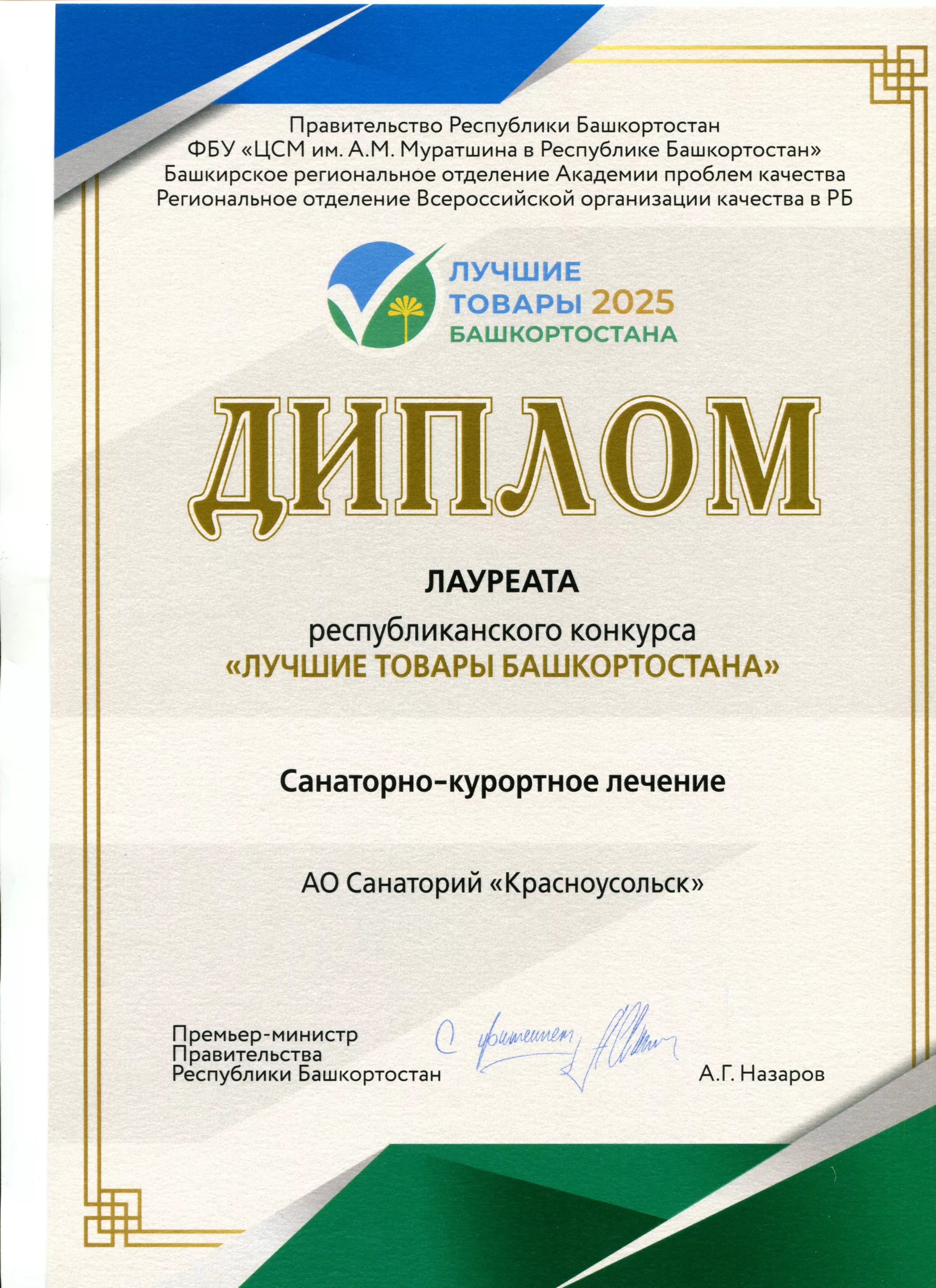 Санаторий «Красноусольск» с гордостью объявляет о своей победе в республиканском конкурсе «Лучшие товары Башкортостана»!