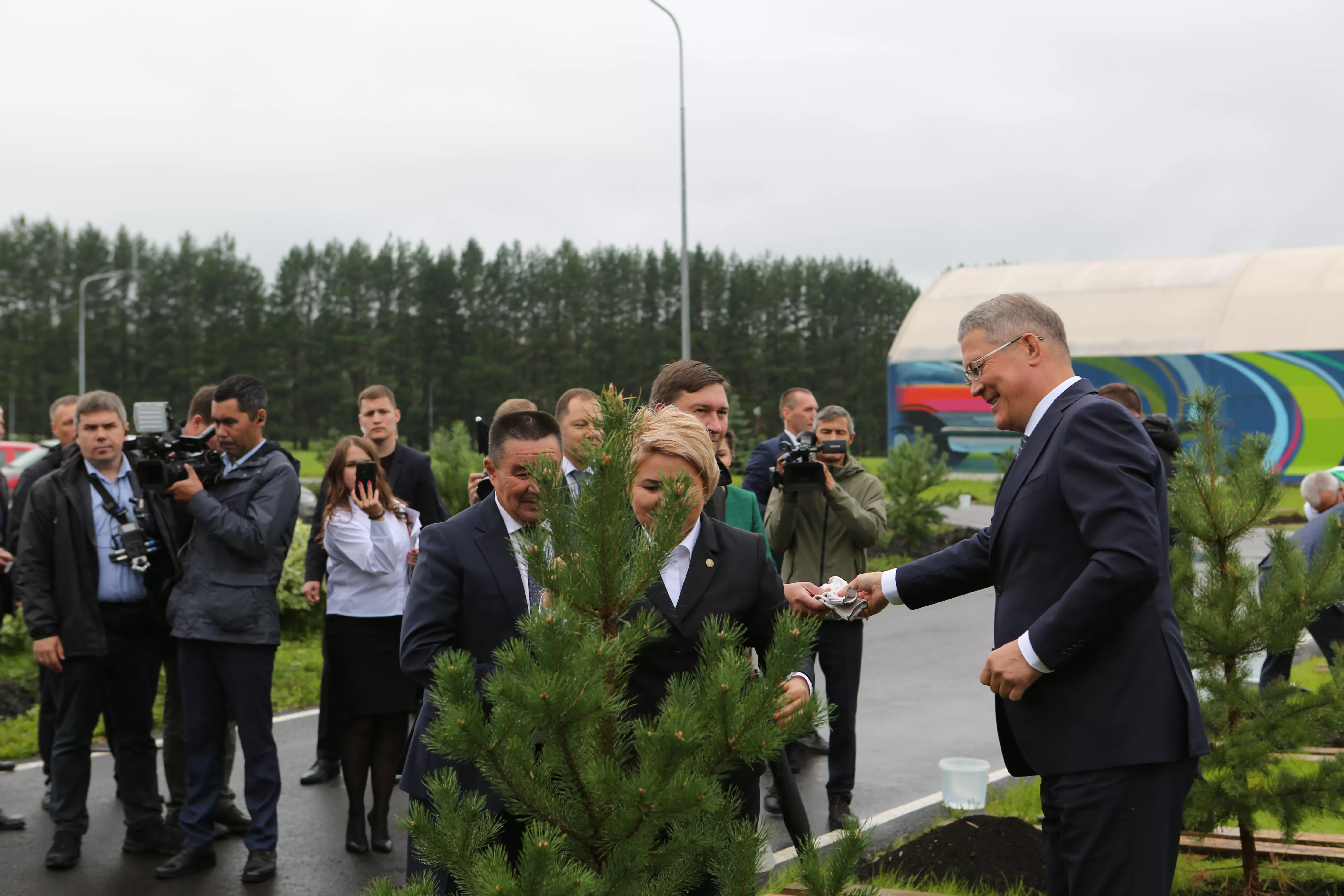 Потом Радий Фаритович с Рамилем Рафаиловичем возглавили посадку деревьев, посадив первую сосну рядом с лыжероллерной трассой, проложенной по территории санатория. Посадку сосен продолжили гости и сотрудники санатория, увековечивая свою причастность к знаменательной дате. Дело в том, что для гостей были подготовлены бирки с QR-кодами, куда была заложена информация с указанием данных о госте и причине посадки дерева, и эту бирку каждый гость вешал на ствол или ветку дерева.