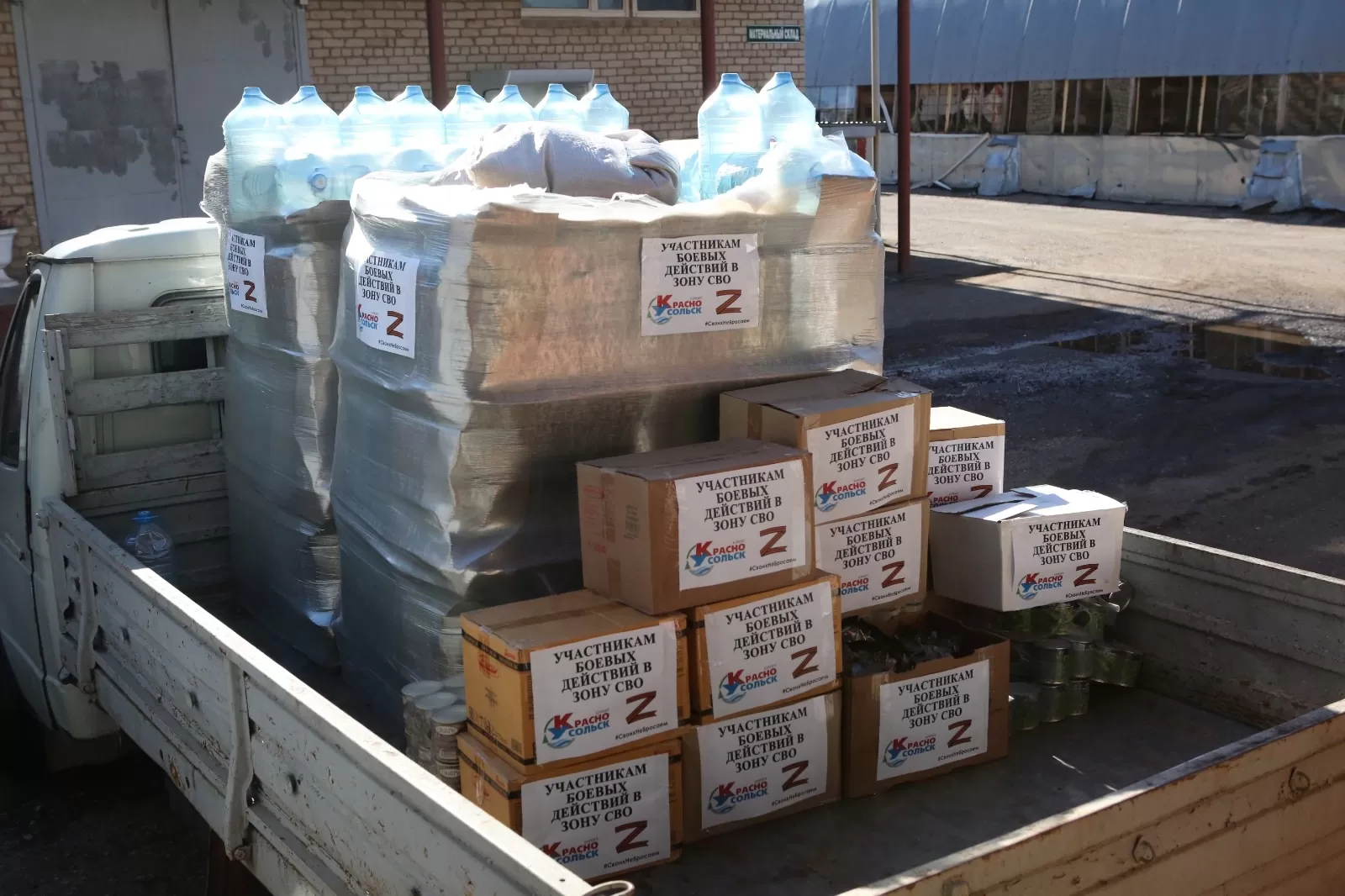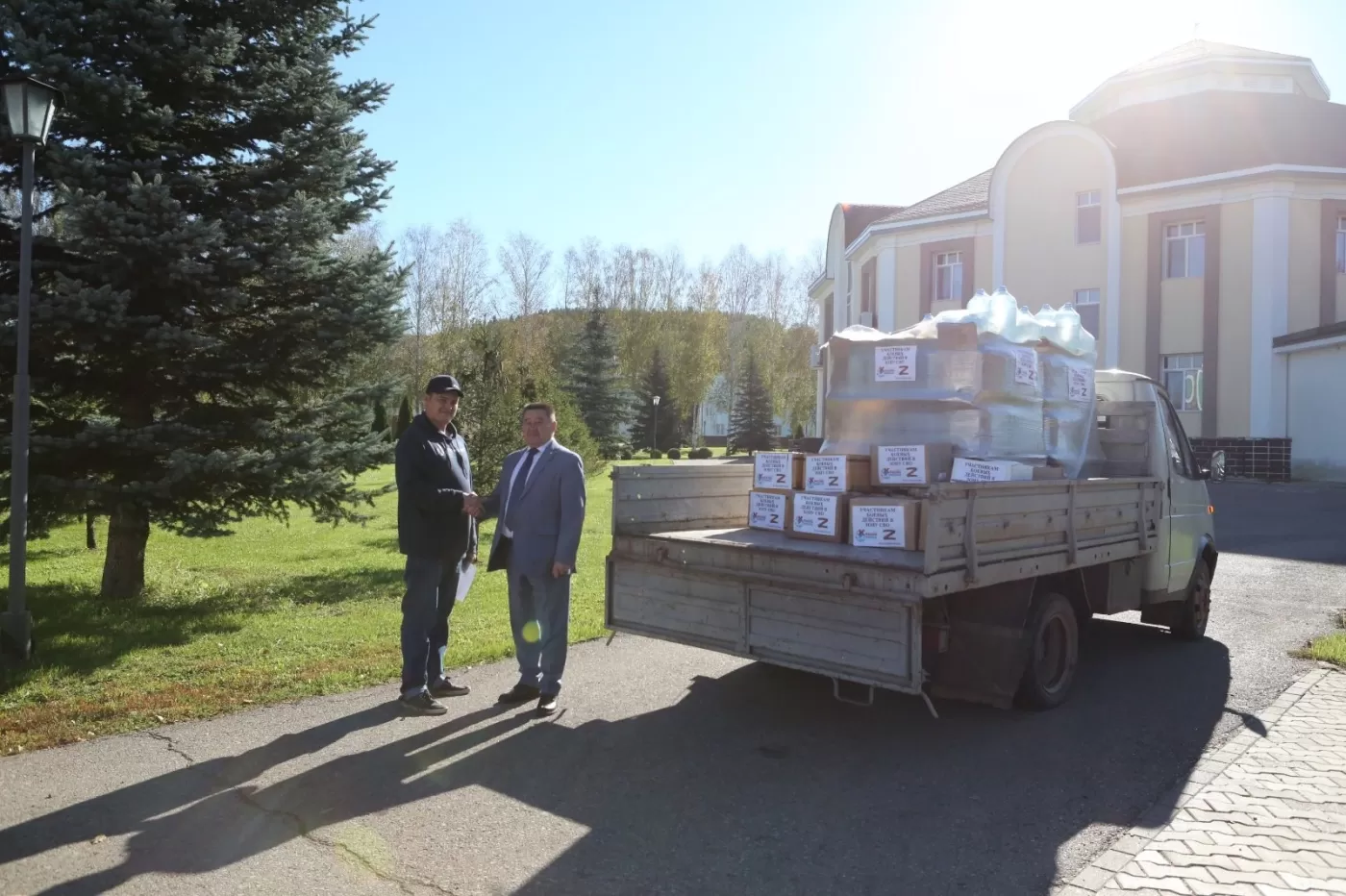 Сегодня санаторий «Красноусольск» передал администрации муниципального района Гафурийский район 10 тонн воды и продукты питания для отправки в зону специальной военной операции