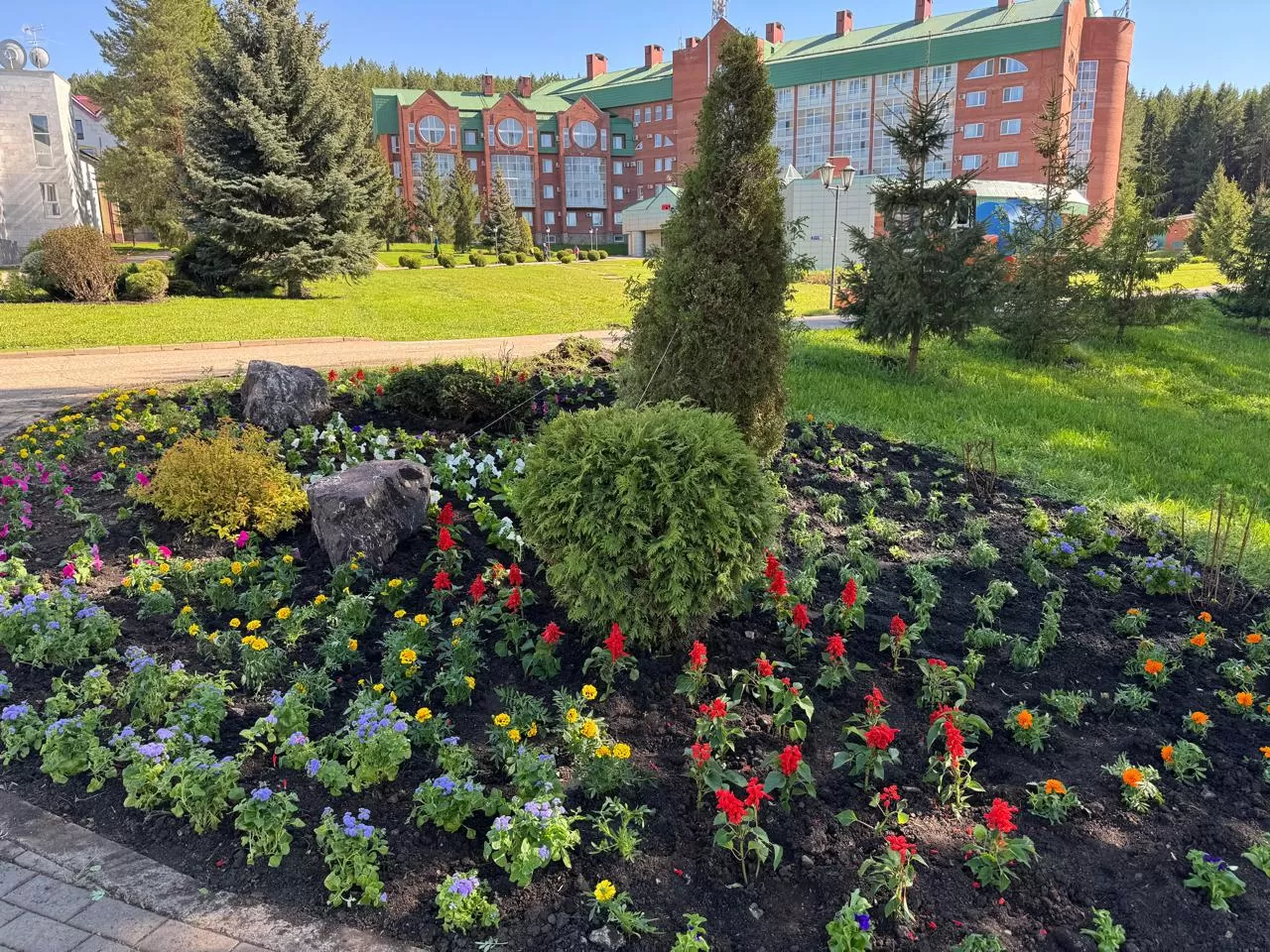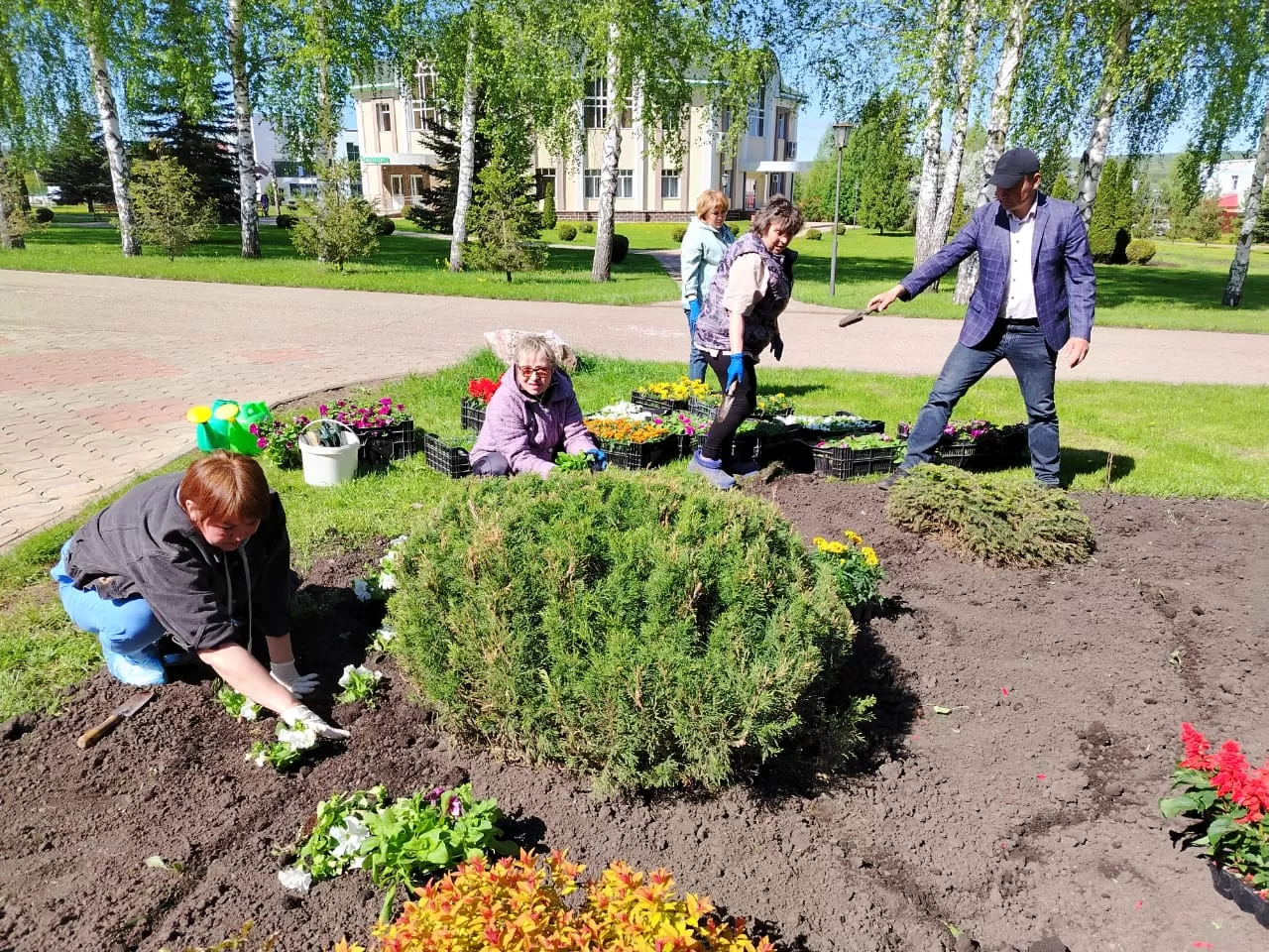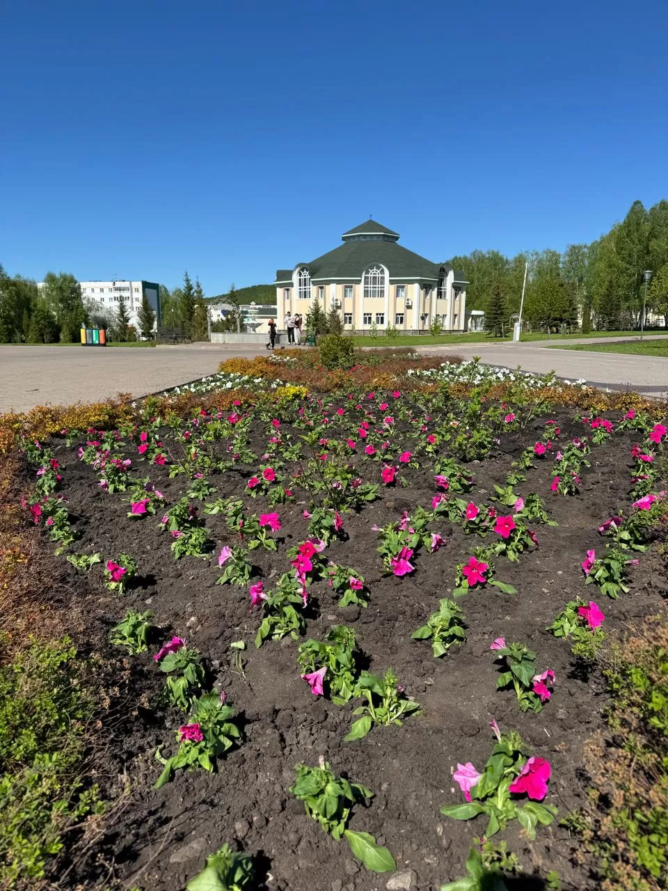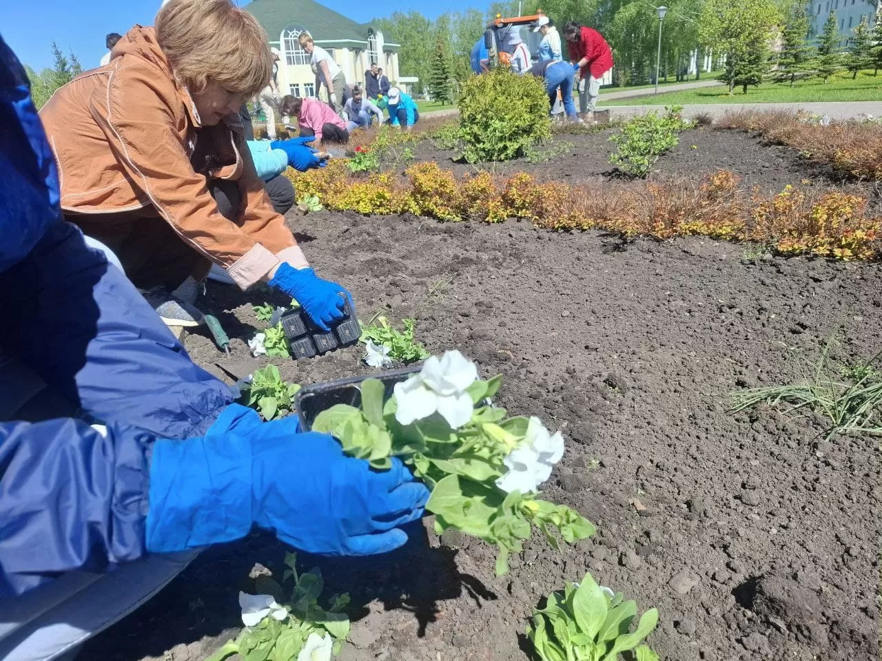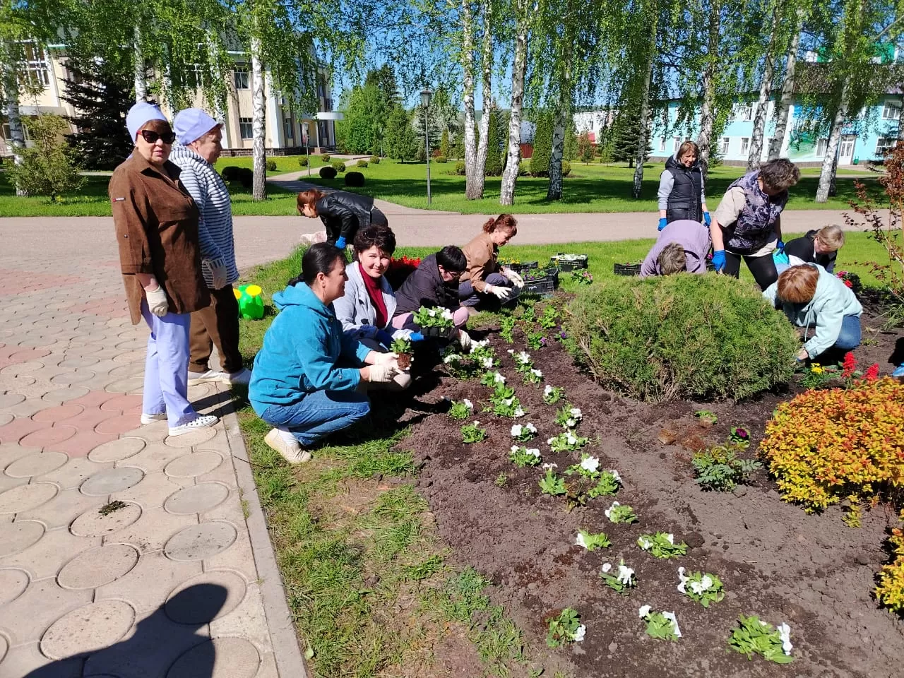 Сотрудники дружно взялись за дело и высадили у зданий регистратуры и ЛДК пышные петунии самых разных оттенков!