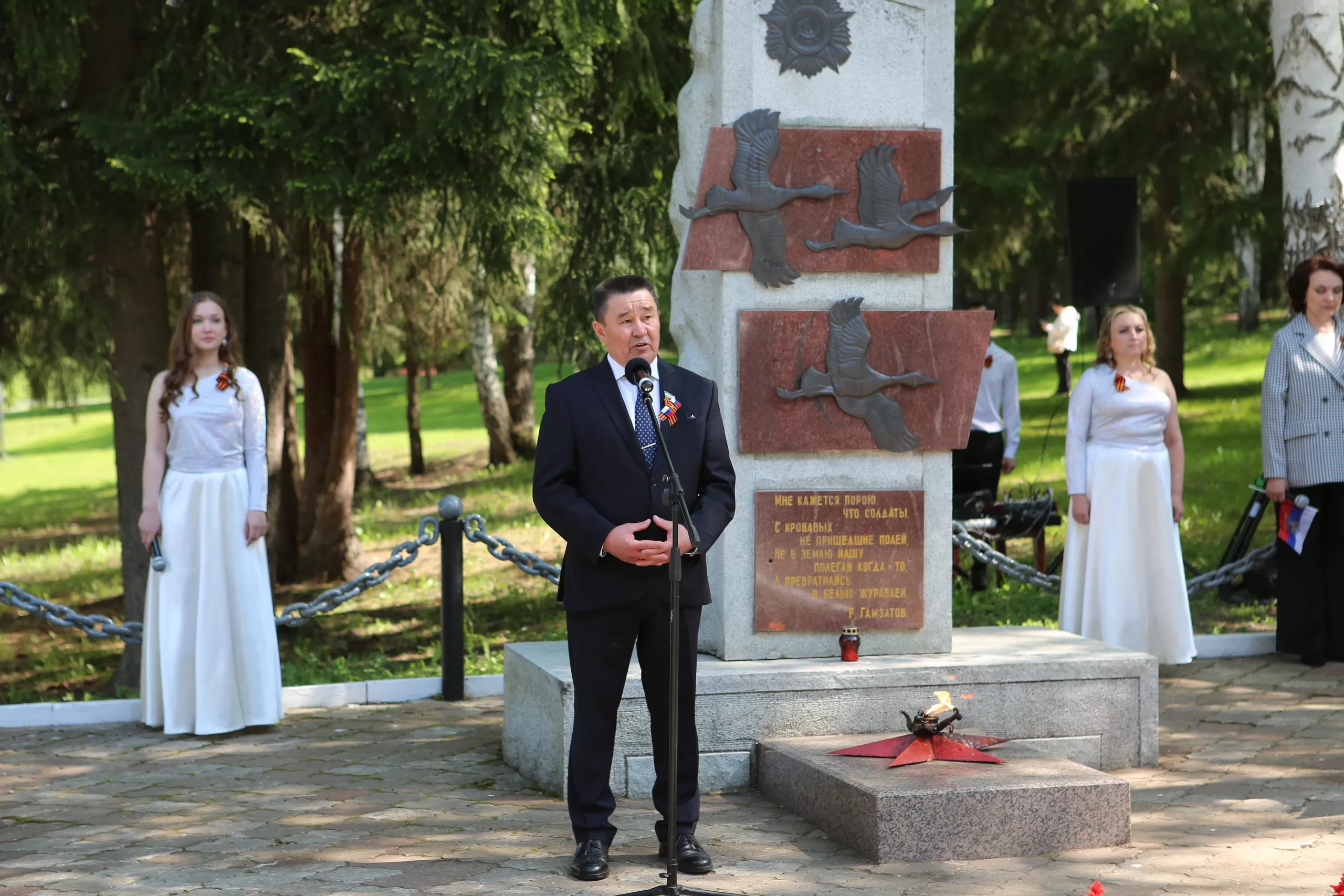 Присутствующие почтили память погибших минутой молчания. Кульминацией праздника стало возложение цветов к памятнику героям Великой Отечественной войны.