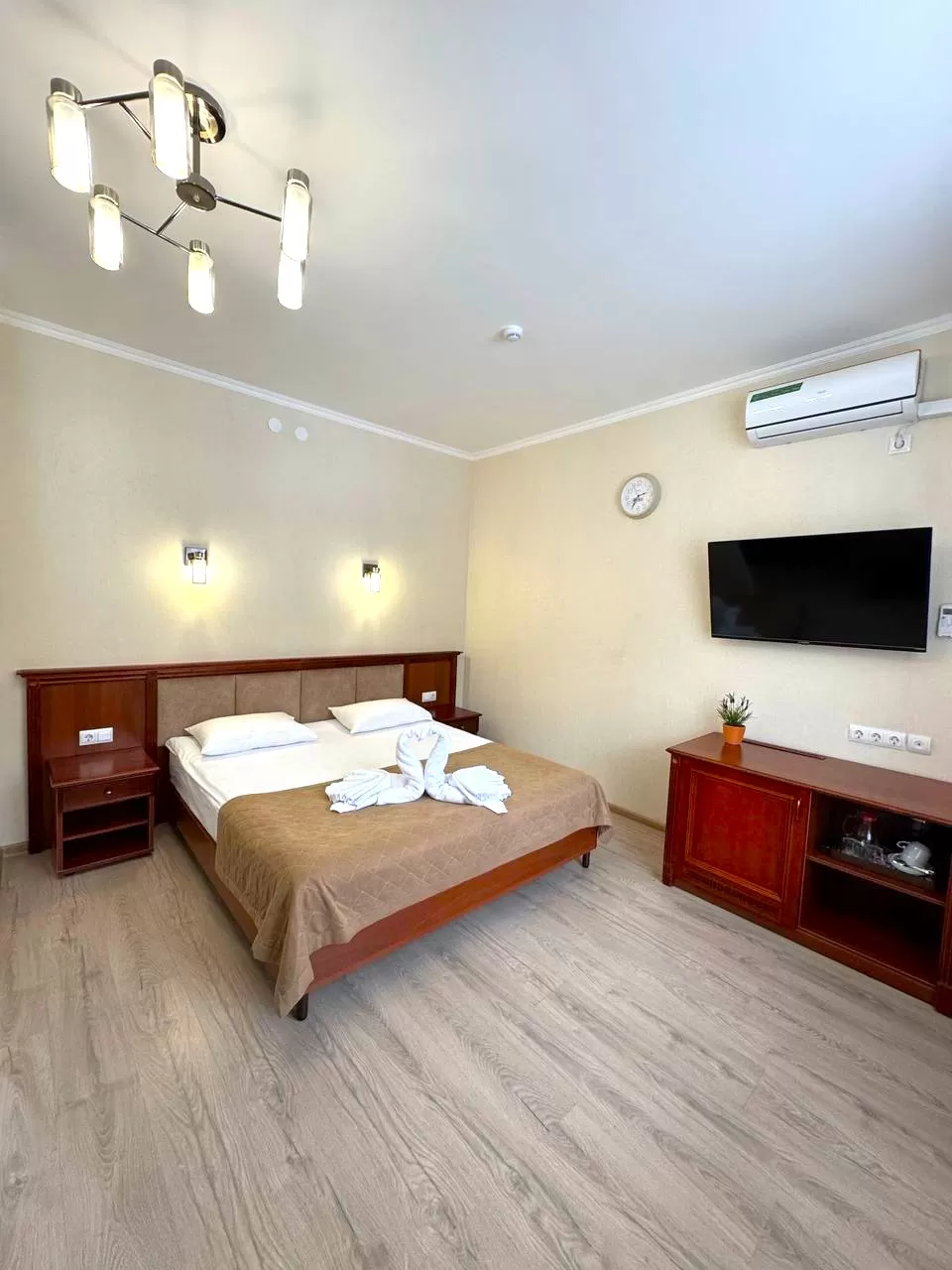 Во всех номерах: сейф, глад.доска, сушилка для белья, элек.чайник, утюг, посуда (графин, 2 стакана, 2 чайн. пары, чайн. ложки, открывашка) минибар, халаты, по 2 комп. полотенец.