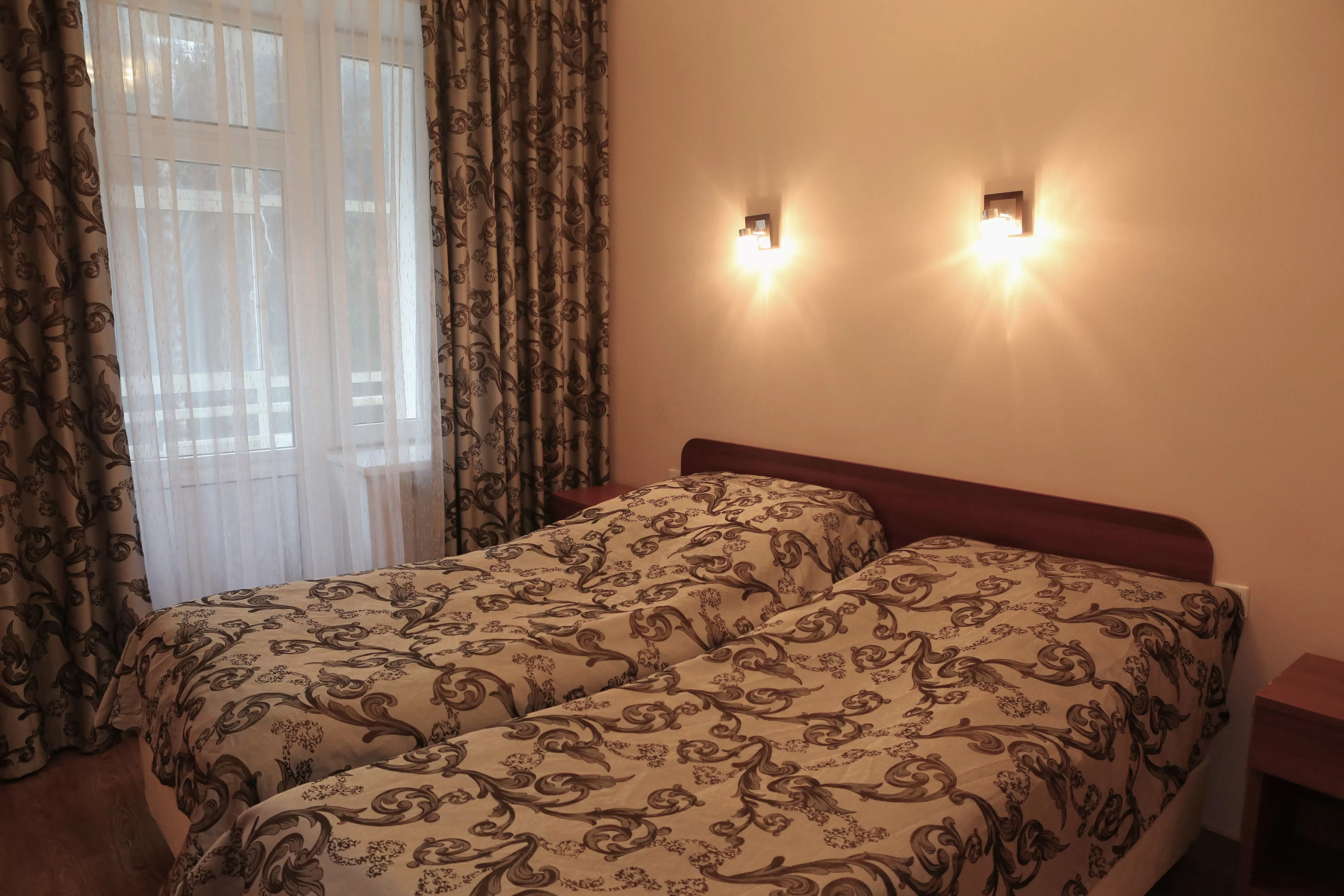 Заселение проводится в здании Регистратуры.Общее количество номеров - 90: