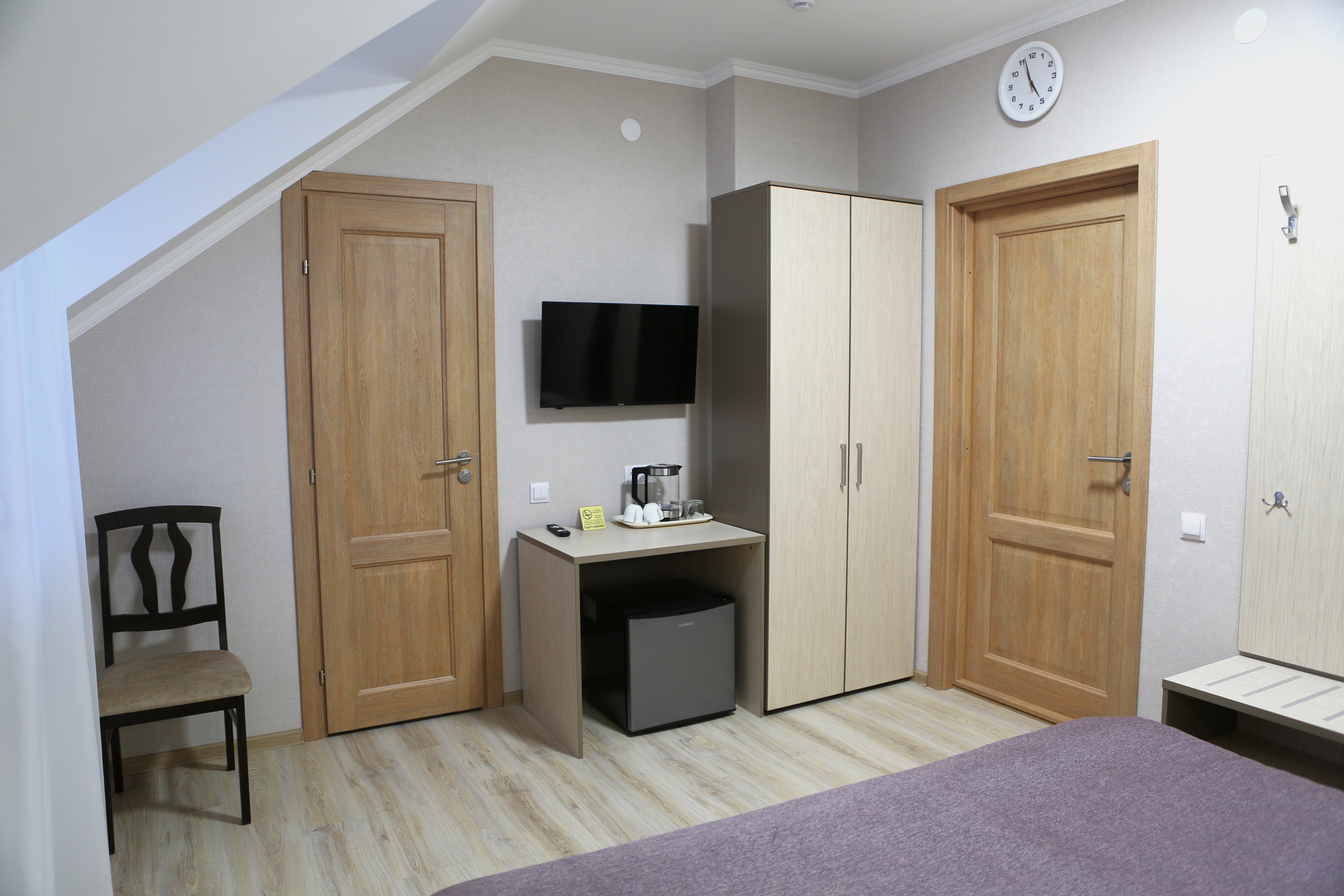 Отличный номер с большой кроватью в спокойных бежевых оттенках.